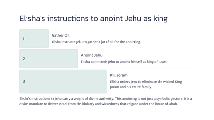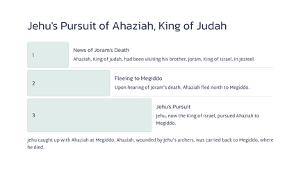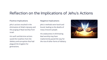Dit was 'n dramatiese keerpunt in die geskiedenis van Israel, wat die einde van die Agab-dinastie en die begin van 'n nuwe era gemerk het.