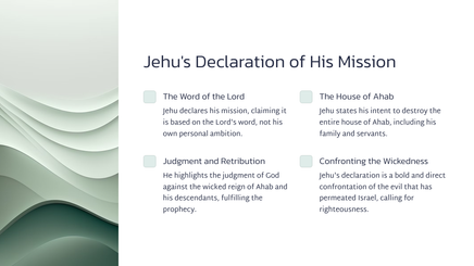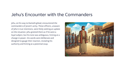 Jehu was 'n militêre bevelvoerder wat deur God gekies is om die goddelose koning Joram en die hele huis van Agab omver te werp.