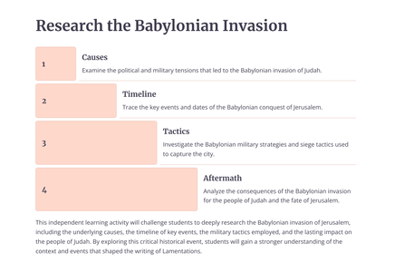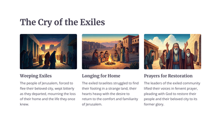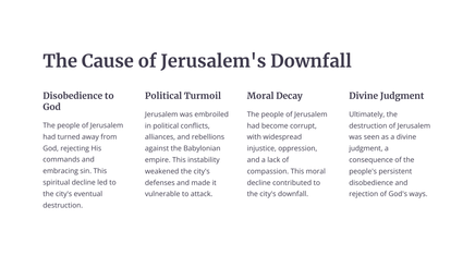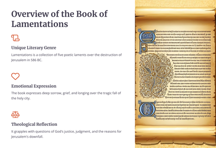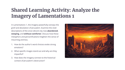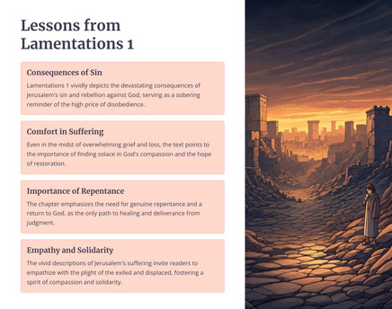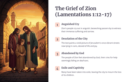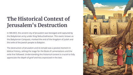 Die boek Klaagliedere skets 'n lewendige en hartseer prentjie van die vernietiging van Jerusalem deur die Babiloniërs. Die profeet Jeremia treur oor die eens welvarende en lewendige stad, wat nou in puin en wanhoop gelaat is.