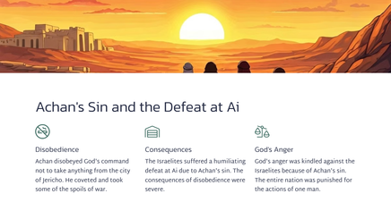 Die Israeliete was oorwinnaars in die slag van Jerigo, maar het 'n verpletterende nederlaag by Ai gely. Hierdie gebeurtenis dien as 'n kragtige herinnering oor die belangrikheid van gehoorsaamheid en die gevolge van sonde.
