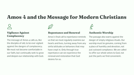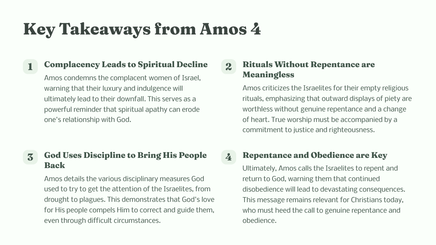 In die vierde hoofstuk van die Boek Amos lewer die profeet 'n kragtige boodskap aan die volk Israel, waar hy hulle van die gevolge van hulle sondes waarsku en hulle tot bekering roep.