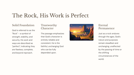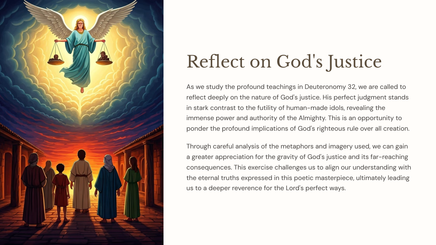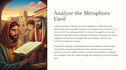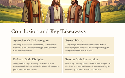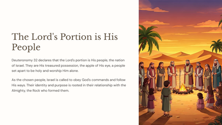 Hierdie hoofstuk teken die kragtige lied en afskeid van Moses op terwyl hy die Israeliete voorberei om die Beloofde Land binne te gaan. Die lied vertel God se getrouheid en geregtigheid, en waarsku teen afgodediens en rebellie.