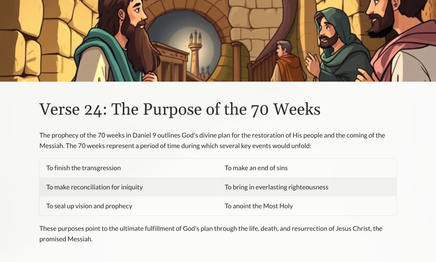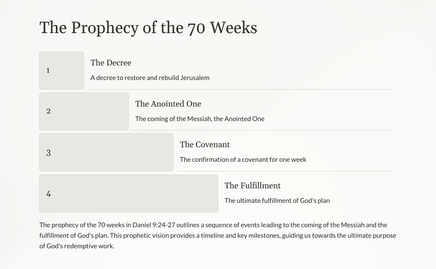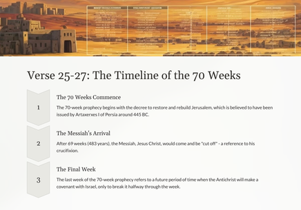 In hierdie hoofstuk ontvang die profeet Daniël 'n diepgaande visie van God, wat die toekoms van die nasie Israel en die koms van die Messias voorspel. Die gedeelte openbaar insigte in God se tydsberekening en plan vir verlossing.