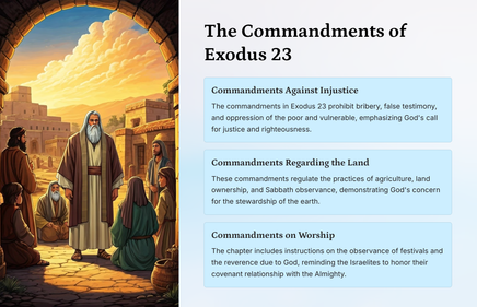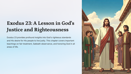 Eksodus 23 verskaf diepgaande insigte in God se regverdige standaarde en Sy begeerte dat Sy volk regverdig moet lewe. Hierdie hoofstuk dek belangrike leringe oor regverdige behandeling, Sabbatsonderhouding en die eer van God op alle terreine van die lewe.