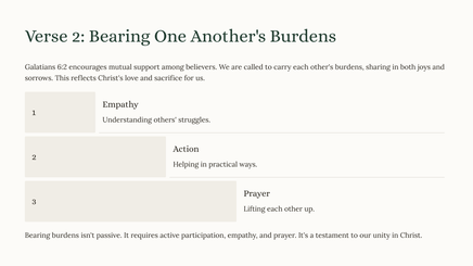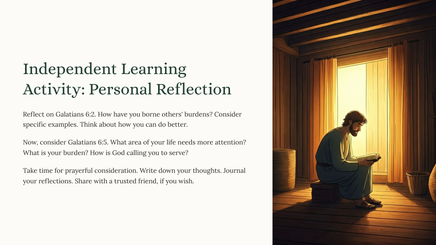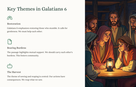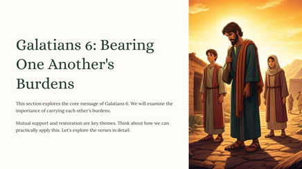 Hierdie afdeling ondersoek die kernboodskap van Galasiërs 6. Ons sal die belangrikheid daarvan ondersoek om mekaar se laste te dra.
