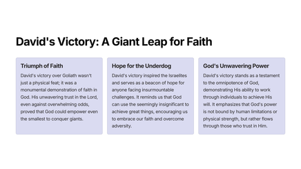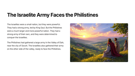 Leer die inspirerende verhaal van Dawid en Goliat met ons Inleiding tot 1 Samuel 17. Ontdek hoe moed en geloof oënskynlik onoorkomelike struikelblokke kan oorkom. Laat hierdie kragtige Bybelse les jou leer en motiveer.