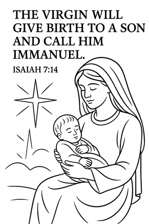Celebrate the true meaning of Christmas with this beautifully illustrated black-and-white coloring collection that brings the Nativity story to life through the pages of Scripture. This unique set of A4 printable coloring pages traces the birth of Jesus Christ through key Bible verses from Matthew and Luke, capturing each holy moment from prophecy to the manger.