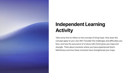 The letter begins with an introduction, emphasizing the importance of living with hope in Christ. Peter describes the "living hope" that believers possess, based on their faith in Jesus Christ. This hope is not merely a wishful thinking or a vague aspiration but a vibrant and active reality grounded in the resurrection of Jesus.