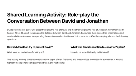 This product is the perfect example of an enduring friendship. With the biblical story of David and Jonathan's bond, you will learn about loyalty, mutual respect, and unwavering support. Delve into the depths of their friendship and discover the true meaning of being a friend.