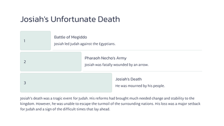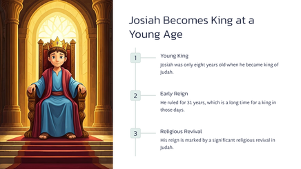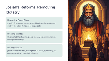 King Josiah, a young and righteous king, implemented a series of reforms to restore the worship of the Lord in Judah.