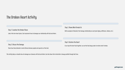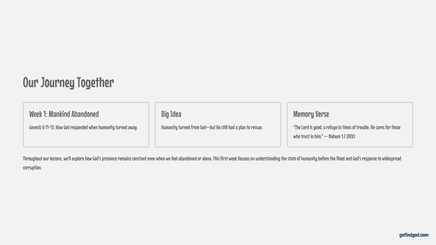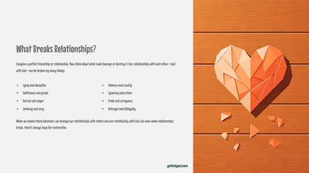 This lesson opens the conversation around sin, separation, and hope, helping students reflect on the brokenness of the world and God’s unfailing commitment to redemption.