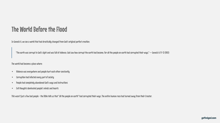 Theme: Abandonment | Bible Passage: Genesis 6:11–13