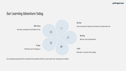Help children explore the incredible power of forgiveness with this engaging Bible lesson based on the story of Jesus healing and forgiving the paralyzed man. Perfect for Christian schools, homeschoolers, and Sunday School programs, this ready-to-use Week 3 resource brings Scripture to life through vibrant visuals, thoughtful questions, and hands-on learning.