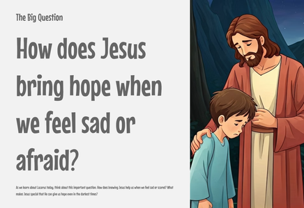 Help your students witness the power and compassion of Jesus through the unforgettable story of Lazarus. In this Week 4 lesson, children explore the miraculous moment when Jesus raised Lazarus from the dead—teaching that Jesus has power over life and death, and deeply cares about those who are hurting. Designed for early primary students, this resource uses storytelling, discussion, and hands-on activities to bring this powerful event to life.