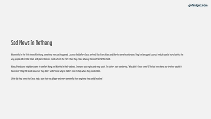 Grade 2 Bible Curriculum – Week 4: Raising of Lazarus