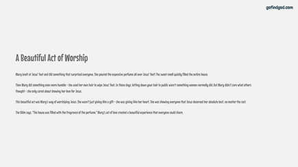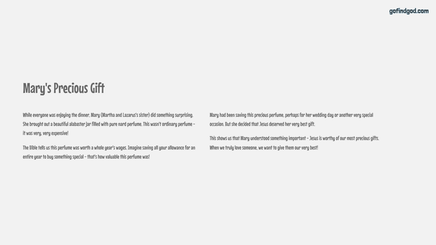 GFG Curriculum- Grade 2 -Term 1 – Week 5 - Mary Annoints Jesus