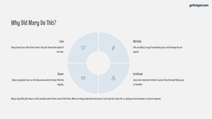 Biblical Understanding: True worship comes from the heart and shows deep love for Jesus.