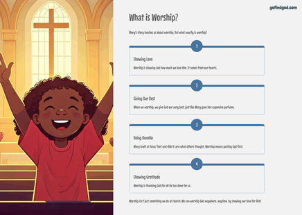 This lesson helps students understand that even simple acts of love can be powerful expressions of faith. Perfect for Christian classrooms, homeschoolers, and Sunday School programs looking to nurture hearts of worship in young learners.