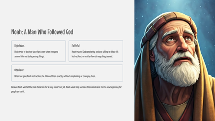 Take your learners on a powerful journey of faith and promise in Week 3: Noah and the Flood. This interactive lesson helps students understand that even in times of judgment and chaos, God's mercy and plan for salvation remain. Through the story of Noah, children will discover the importance of obedience, trust, and God's everlasting covenant symbolized by the rainbow.
