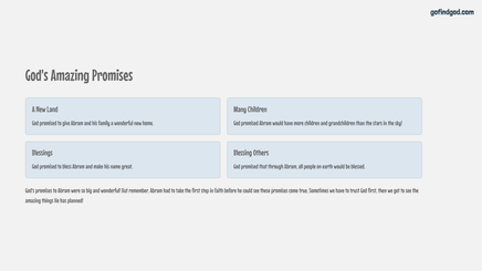 God called Abram to step out in faith and trust Him completely. God had a special plan for Abram that would bless the world.