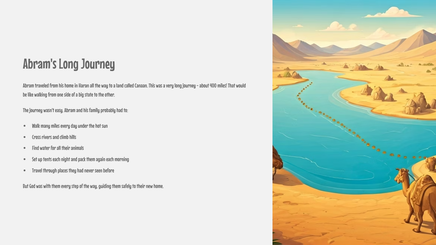 This Week 5 lesson invites Grade 3 students to explore the remarkable moment when God called Abram to leave everything behind and trust in His plan. Through engaging storytelling, reflective journaling, and creative activities, students will see how faith and obedience are key to following God’s calling—even when the path is uncertain.