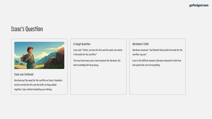 Invite your students into one of the most powerful stories of trust in the Bible—when Abraham was asked to offer his son Isaac. This thoughtful and age-appropriate Grade 3 lesson explores the meaning of obedience, trust, and God's provision in challenging moments.