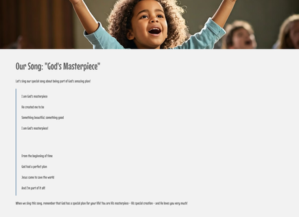 • Song suggestion: “God’s Masterpiece” – Saddleback Kids