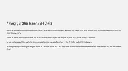 GFG Curriculum- Grade 4 -Term 1 – Week 6 - Jacob and Esau – Sibling Struggles and God’s Plan