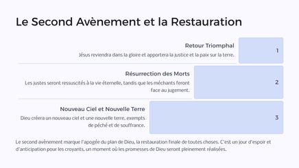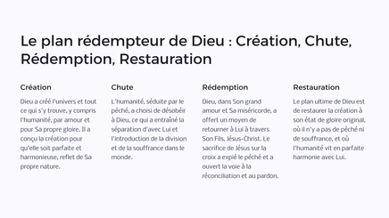 • Aperçu du plan de Dieu : Création, Chute, Rédemption, Restauration.