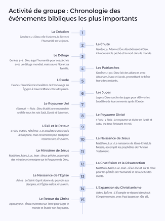 • Activité de groupe : Créer une chronologie des événements bibliques clés.