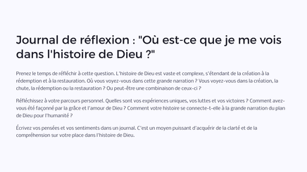 • Journal de réflexion : « Où est-ce que je me vois dans l’histoire de Dieu ? »