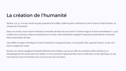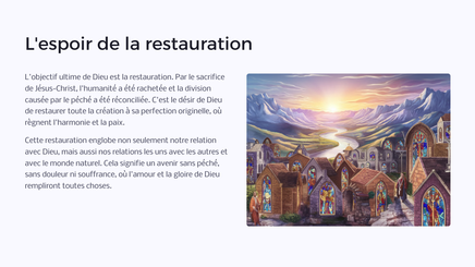 Perspective biblique : Dieu a créé un monde parfait, mais à cause du péché, l’humanité est tombée. Le plan de Dieu restaure ce qui a été brisé.