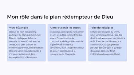 Explorez l'histoire globale de la Bible avec les ressources de la Leçon 1 de la collection de Pâques pour les classes de 5e et 6e année. Le thème de cette semaine est de comprendre le plan de Dieu, révélé à travers des écritures clés et les fils bibliques de la Création, de la Chute, de la Rédemption et de la Restauration. Participez à des activités et des discussions pour identifier votre place dans l'histoire de Dieu.