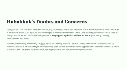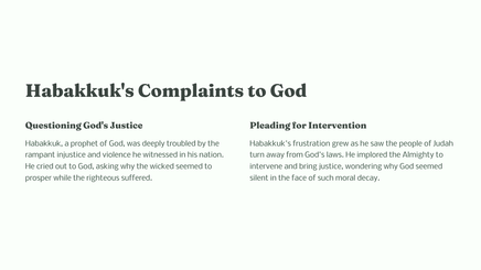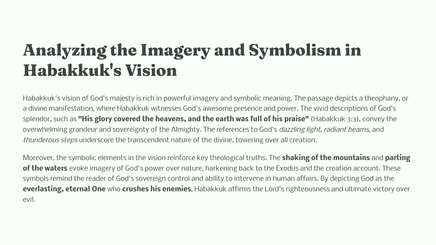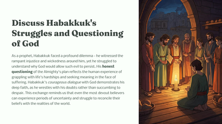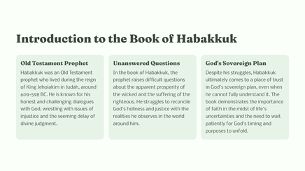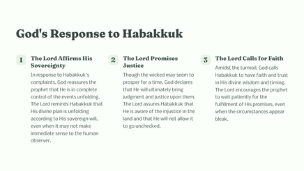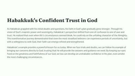 In this powerful passage, the prophet Habakkuk lifts his voice in a heartfelt prayer, expressing his deep trust in God's sovereignty despite the challenges and uncertainties he faces. Through vivid imagery and profound insights, Habakkuk's words inspire us to stand firm in our faith, even amidst life's storms.