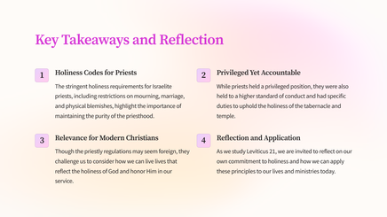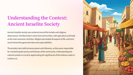 This section from the book of Leviticus outlines the standards of holiness and purity required for the priests who serve in God's tabernacle. It provides guidance on moral conduct, physical appearance, and ritual practices.