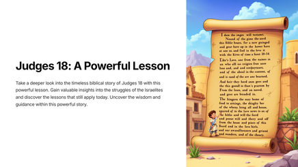 Take a deeper look into the timeless biblical story of Judges 18 with this powerful lesson. Gain valuable insights into the struggles of the Israelites and discover the lessons that still apply today. Uncover the wisdom and guidance within this powerful story.