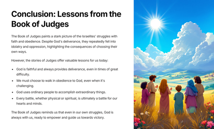Join us as we explore the book of Judges, chapter 3, and discover timeless lessons on faith and obedience. We'll examine the lives of the Israelites as they face trials and temptations. This journey will help us understand the importance of walking with God in our own lives.