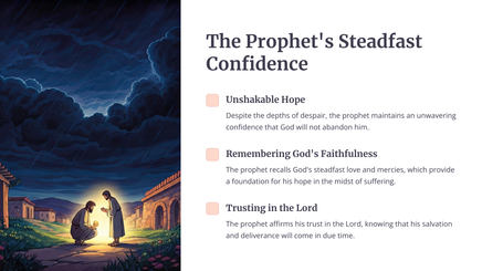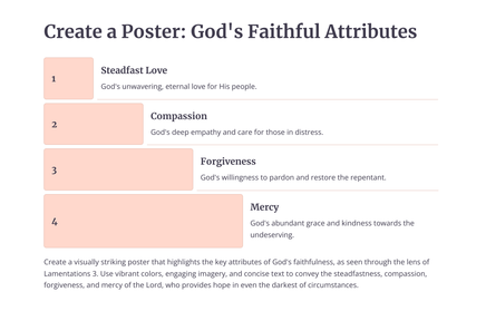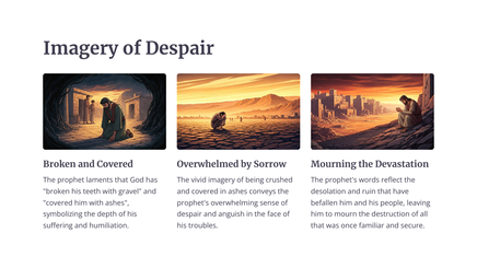 In the midst of profound lament and anguish, the prophet Jeremiah offers a message of hope and restoration for the people of God. This powerful passage guides us through the depths of human suffering and points us towards the everlasting mercies of the Lord.
