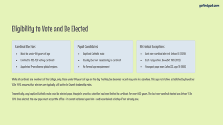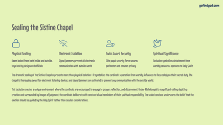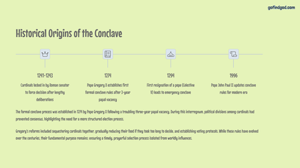 Throughout this presentation, we'll examine the procedures, rich symbolism, and historical significance of papal elections. From the moment a papal seat becomes vacant to the iconic white smoke rising above St. Peter's Square, the Conclave represents a fascinating blend of tradition and divine guidance.