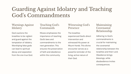 Deuteronomy 4 provides powerful teachings on the importance of worshipping the one true God and following His commandments. Through this chapter, we can learn how to live lives that truly glorify the Lord and honor His sovereignty.