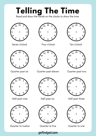 Math Activity Worksheets - Telling the time
