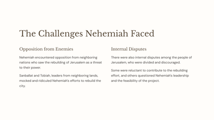 Nehemiah, a devout leader, returned to Jerusalem after decades of exile. Witnessing the hardships faced by his people, he was moved to act.