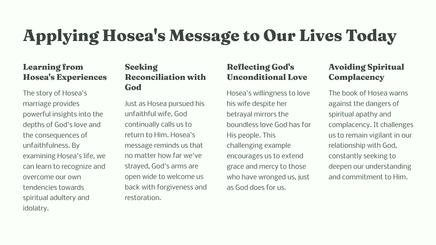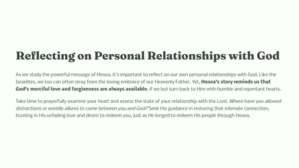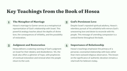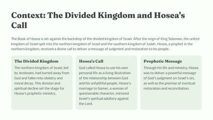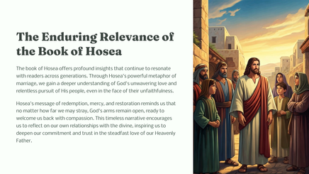 The Book of Hosea offers a powerful and poignant account of God's unwavering love for His people, even in the face of their unfaithfulness. Through the life and experiences of the prophet Hosea, we are given a glimpse into the depth of the Lord's compassion and the redemptive nature of His relationship with His chosen nation.