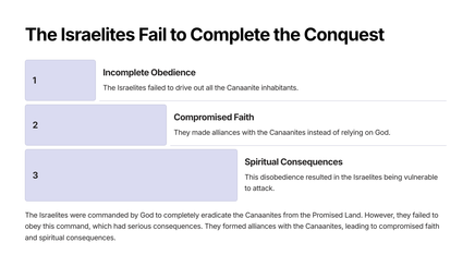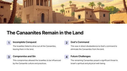 The tribes of Israel are tasked with driving out the Canaanites, a task that seems daunting but is meant to test their faith and obedience.