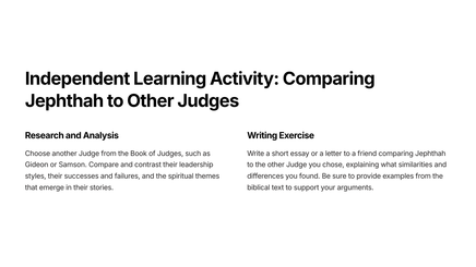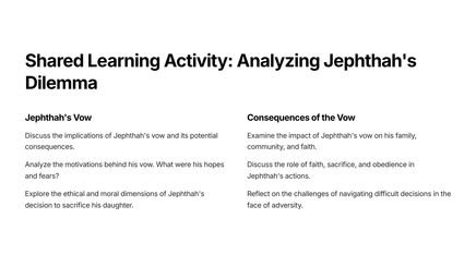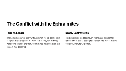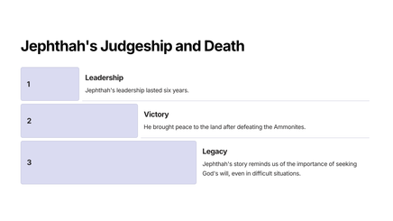 Discover the powerful story of Jephthah in Judges 11. This chapter follows the journey of a courageous leader as he fulfills his vow to the Lord and secures victory for his people. Learn from Jephthah's unwavering faith and unwavering determination, and gain insight into the transformative power of commitment.
