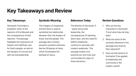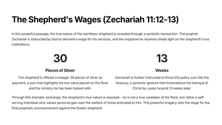 Explore the powerful prophecy of Zechariah 11, which offers profound insights into the coming Messiah and the state of God's people. This teaching unit will guide students through the key themes and lessons found within this captivating chapter of the Bible.