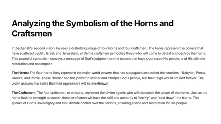 Zechariah's prophetic vision bridges the gap between the ancient world and the modern era, offering a timeless message of hope and restoration. Through his encounters with divine messengers, the prophet unveils a tapestry of symbolism, guiding us to discover the eternal truths that transcend the boundaries of time.