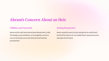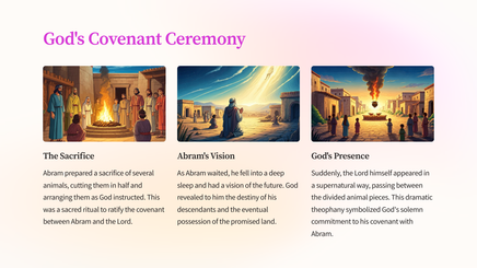 In this pivotal chapter, God makes a solemn covenant with Abram, promising him a vast inheritance and a future son despite his old age. Abram's unwavering faith is tested, leading to a profound spiritual transformation.