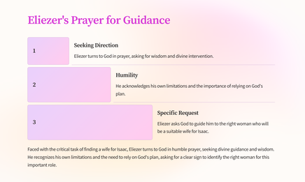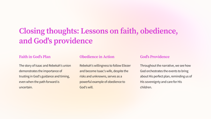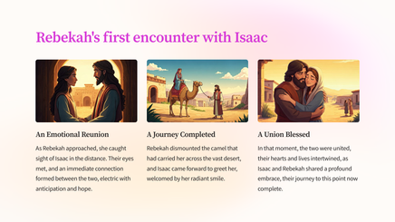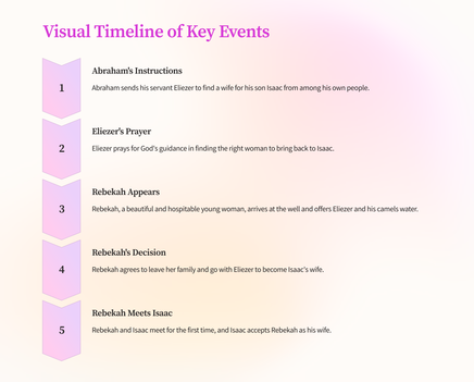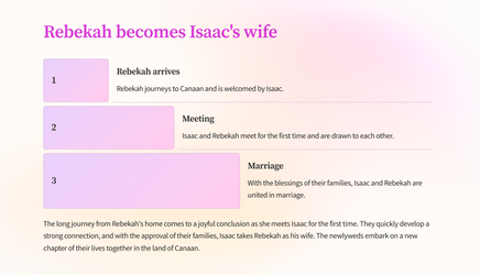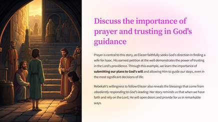 In this key chapter of Genesis, we follow Abraham's servant as he travels to find a suitable wife for his master's son, Isaac. Through divine guidance and faithful obedience, the servant witnesses God's Hand at work in bringing Rebekah and Isaac together.