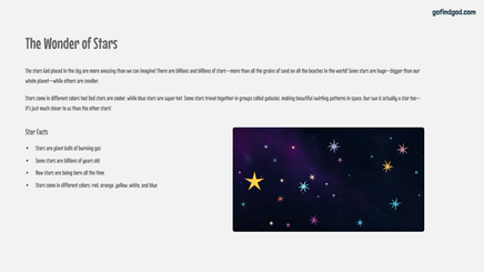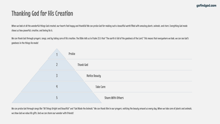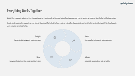 Celebrate the beauty and creativity of God's world in Week 3 of the Go Find God Kindergarten Bible series! In this engaging and sensory-rich lesson, children explore how God filled the world with plants, animals, and stars, sparking wonder, gratitude, and hands-on discovery.